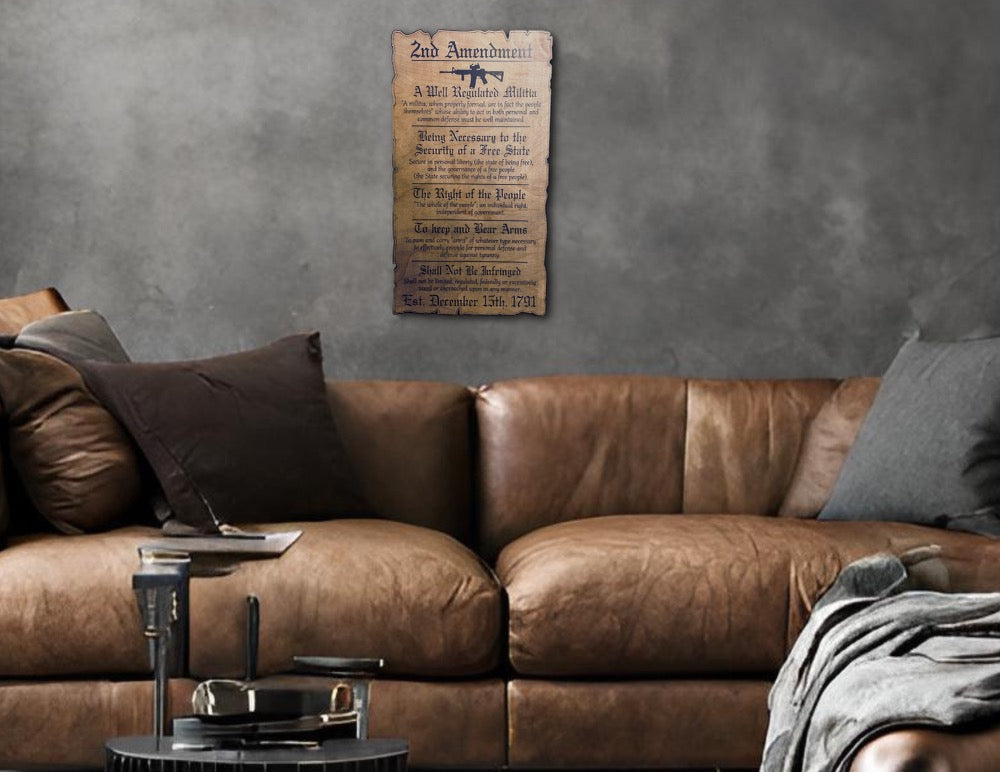 Laser-engraved 2nd amendment sign.