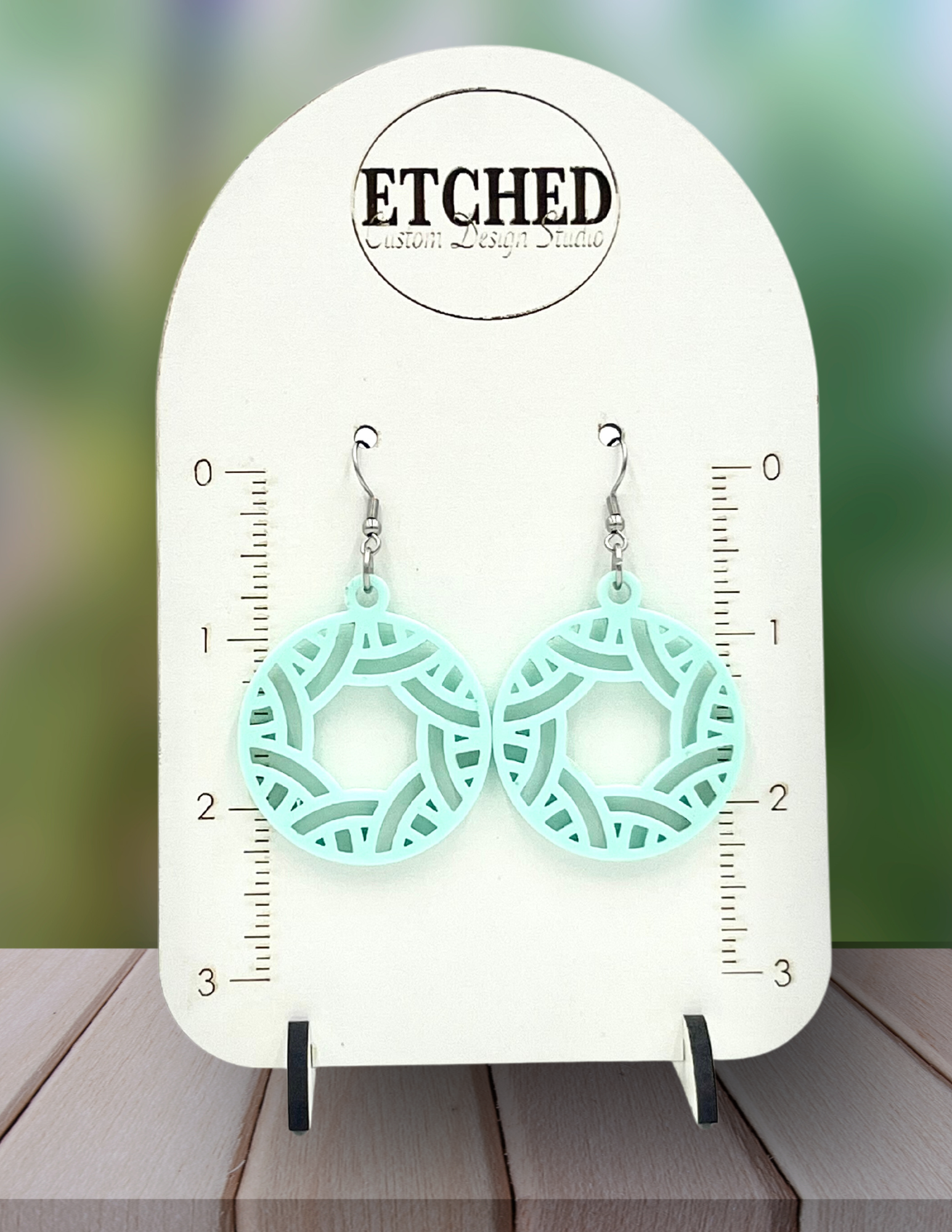 Mint acrylic dangle earrings. Hypoallergenic surgical stainless steel earring hooks.